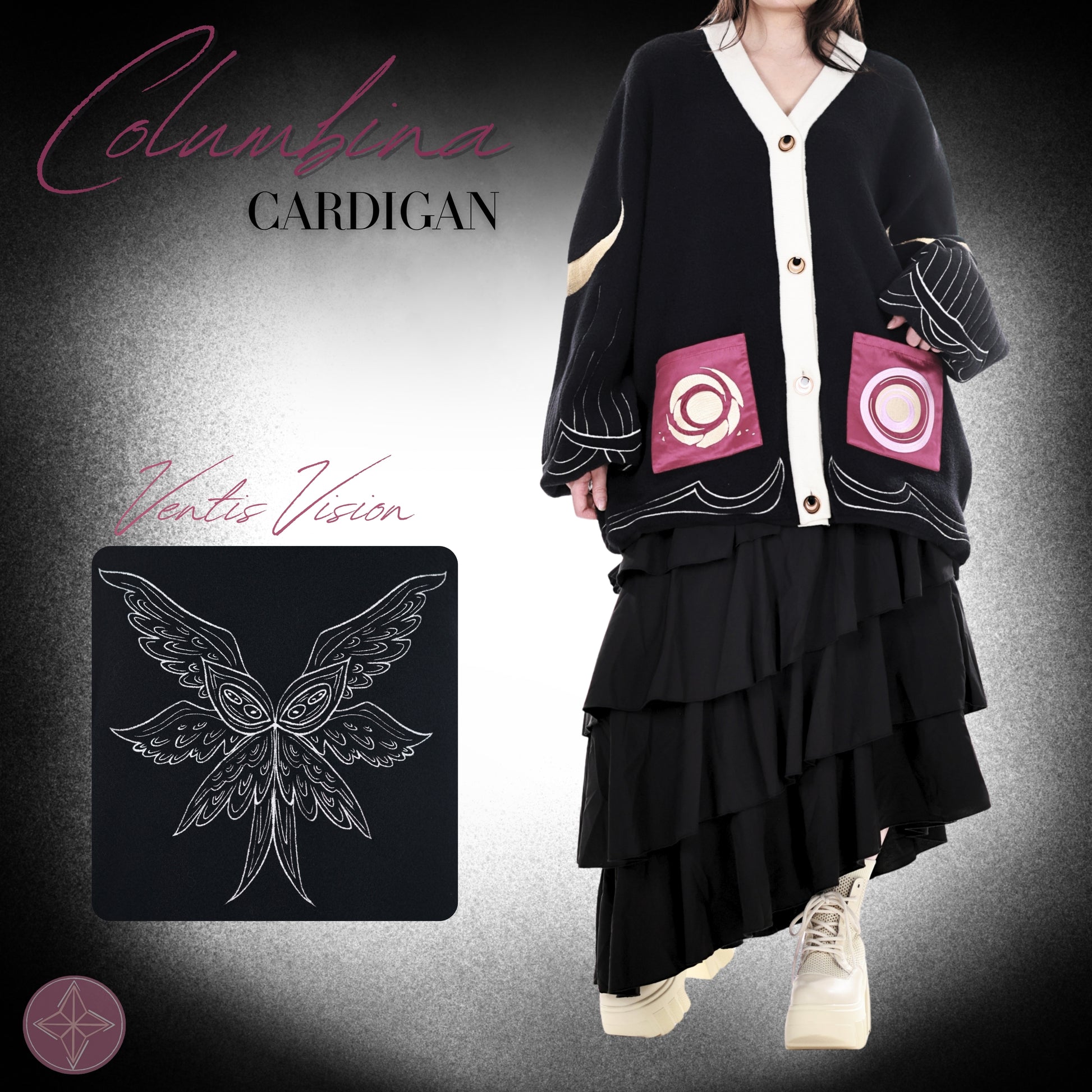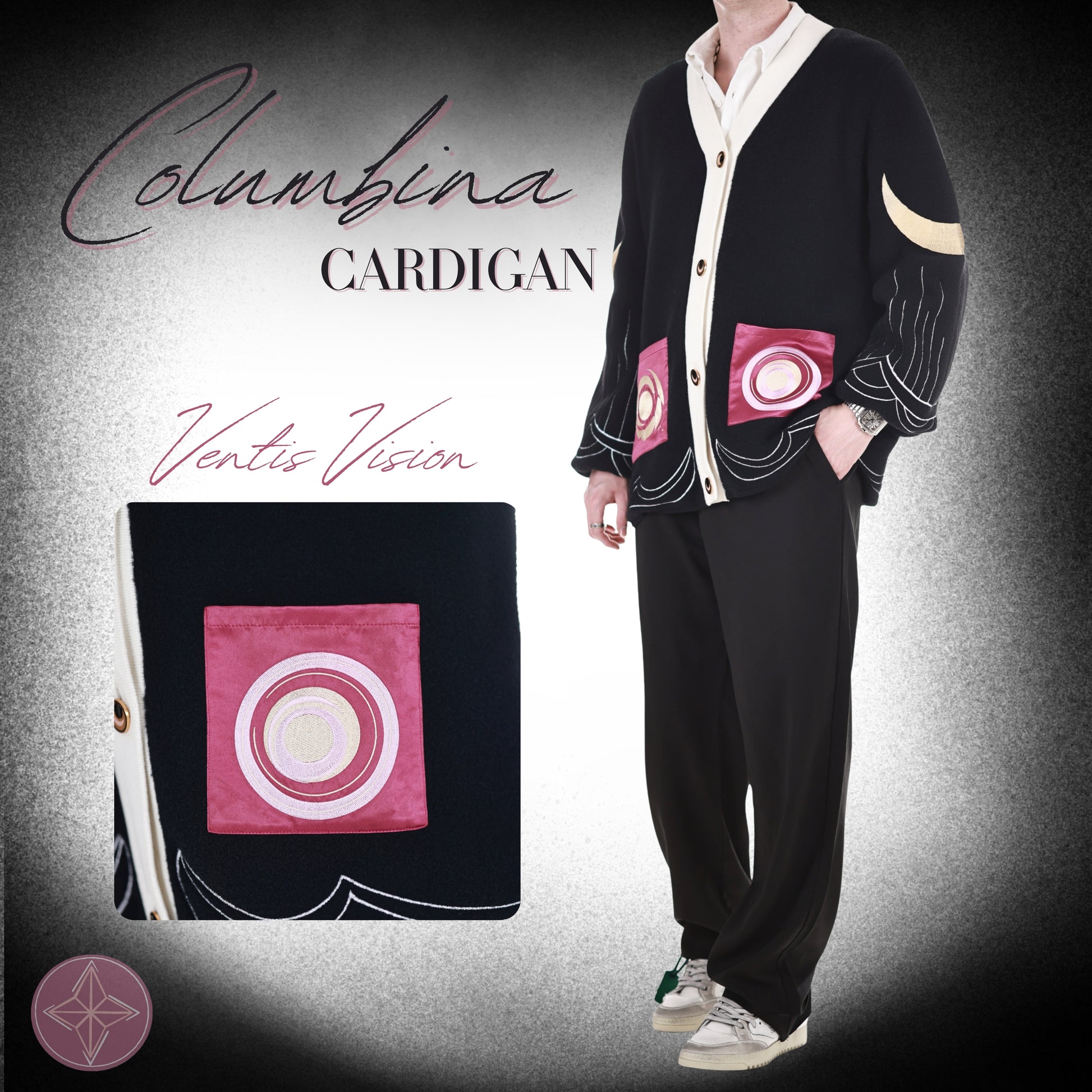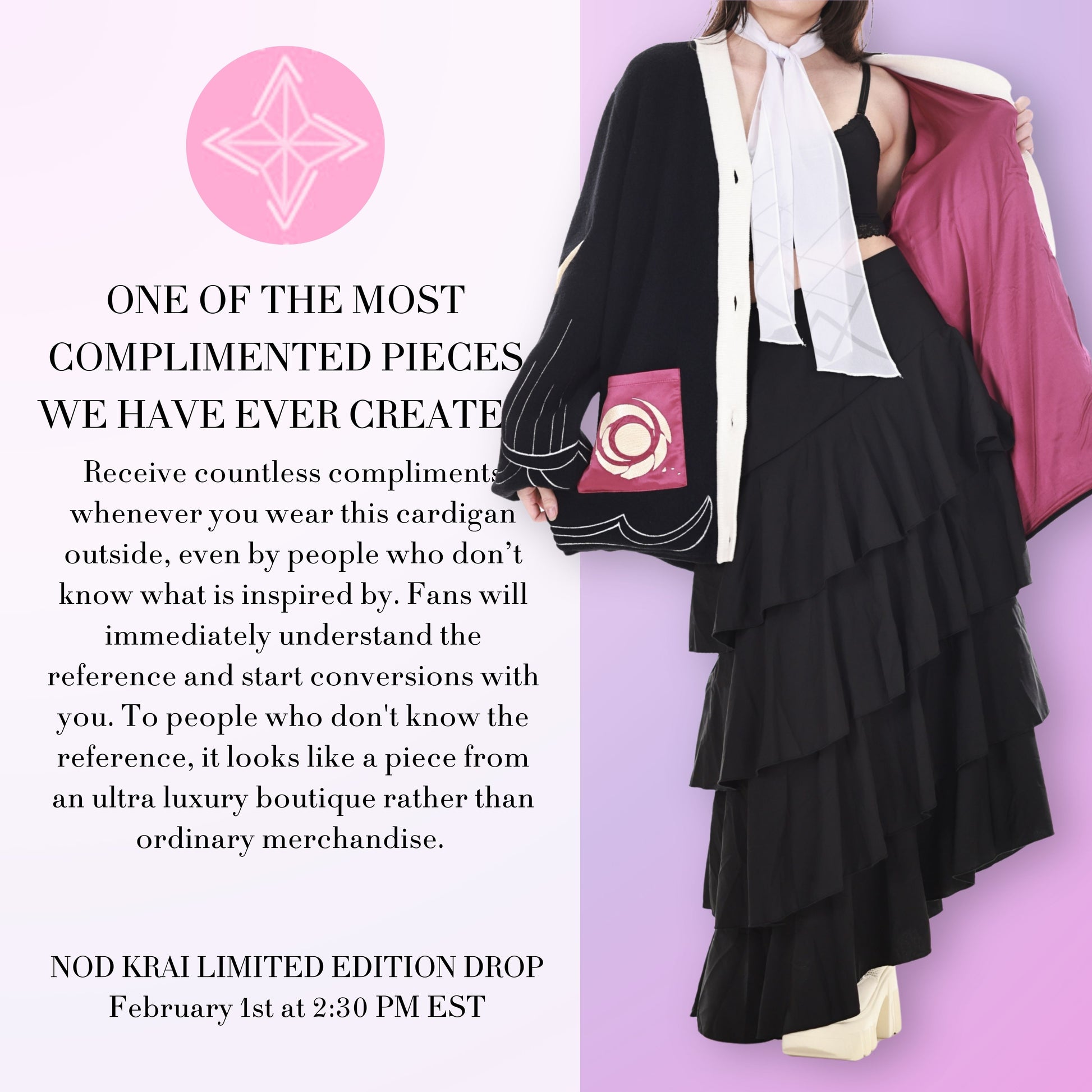 A Cardigan with a resemblance to Columbina from Genshin Impact. Enhance your wardrobe with this limited edition cardigan.